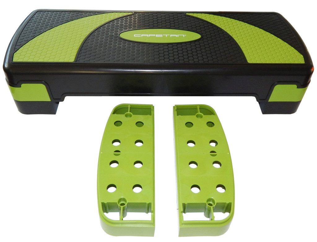 Capetan® Evora Lime Steppbrett 78x30x20 cm, in 3 Höhen verstellbar: Capetan® 78 cm langer Steppbrett – zwischen 10 - 15 - 20 cm verstellbare Höhe. Diese Größenkategorie ist in erster Linie für private Verwendung zu Hause empfohlen, denn seine 78 cm Länge ist kürzer als die in Fitnessräumen verwendeten Reebok und ähnlichen größeren 96 cm langen Ausführungen. Die Belastbarkeit des Steppbrettes ist 250 kg, somit können auch Verwender mit höherem Körpergewicht das Produkt benutzen.