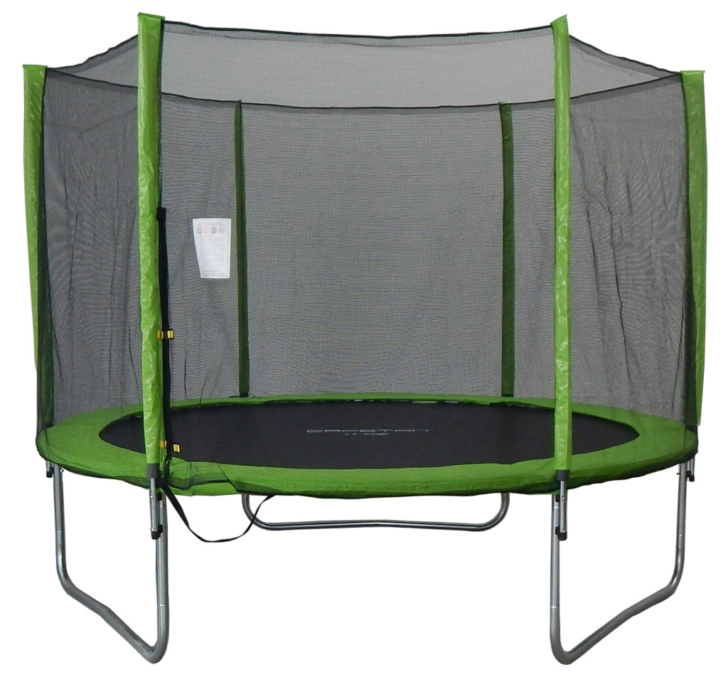 Capetan® Omega 305 cm Durchm. Trampolin mit extra hohem Sicherheitsnetz, durch zusätzliche das Gestell befestigende T-Elemente verstärkte Konstruktion, mit einem Sprungtuch in 80 cm Höhe, mit dicker Federabdeckung: "305 CM DURCHM. PREMIUM GARTENTRAMPOLIN + SICHERHEITSNETZ" SET MIT 60 STCK. FEDERN FÜR VERWENDUNG IM FREIEN, MIT 3 STCK. W-BEINEN! EIN PRODUKT HOHER QUALITÄT IN ZWEI PAKETEN VERPACKT. Das T-förmige das Gestell fixierende Metallelement macht den Auf- und Abbau des Trampolins einfach und sorgt für eine zusätzliche Befestigung des Rahmengestells. Das Trampolinset mit dem Namen "305 cm Durchm. Trampolin mit Sicherheitsnetz" ist ein Produkt, das auch den strengsten internationalen Vorschriften entspricht. Die Federn des Trampolins sind aus korrosionsbeständigem Material hergestellt und haben eine galvanisierte Oberfläche. Laut Anweisungen des Herstellers ist das Trampolin nur durch eine Person zur selben Zeit zu benutzen, was einen einfachen Grund hat: auf dem Sprungtuch soll man im markierten Mittelpunkt springen. Das Trampolin entspricht der internationalen normativen Regelung EN 71, und darüber hinaus verfügt es über die von deutscher technischen Prüforganisation ausgestellte Übereinstimmungsbescheinigung TÜV GS. Technische Daten: - Capetan® Omega Trampolin von 305 cm Durchmesser mit Sicherheitsnetz, mit 60 Stck. Federn, 160 kg Belastbarkeit. Mithilfe des das Gestell zusammenschließenden zusätzlichen Elements wird der Auf- und Abbau des Trampolins im Vergleich mit traditionellen Modellen viel einfacher. - Galvanisierte korrosionsbeständige Konstruktion - 3 Stck. stabile und kraftvolle W-Beine, die die Stabilität des Trampolins sichern - Das Trampolin hat 13,8 cm lange Federn mit zwei Galvanisationsschichten - Grüne Federabdeckung mit beständiger Oberfläche, mit 2 cm dicker Polsterung (in ihrem vollen Durchschnitt nicht nur über dem Gestell verdickt) - 60 Stck. galvanisierte hochresistente Spannfedern - Höhe des Sprungtuches vom Erdboden: 80 cm - Durchmesser des Trampolins: 305 cm - Durchmesser des Sprungtuches: 245 cm - Gesamthöhe des Trampolins: cca. 265 cm - Extra hohes, besonders sicheres Schutznetz, vom Sprungtuch aufwärts 185 cm hoch! - Mit außenliegendem Sicherheitsnetz versehene Ausführung, mit langen Netzstangen und einem Sicherheitsnetz, die extra stabil sind; mit zweistelliger Rohrbefestigung durch Schäkeln. - Die Distanzhalter zwischen den Netzstangen und den Trampolinrohren sind aus Gummi gefertigt, so dass sie durch die Veränderung von Kälte und Wärme nicht platzen, wie die von härteren Plastikmodellen. - Belastbarkeit des Trampolins: 160 kg - Das "305 cm Trampolin + Netz" Set ist durch schwere Belastbarkeit, 3 Stck. Beine und neue, in ihrem vollen Durchschnitt 2 cm dicke Federabdeckung charakterisiert, das mit Modellen, die bloss eine von 1 cm auf 2 cm erhöhte Dicke dem äußeren Schutzrand entlang haben, nicht gleich zu setzen ist. - Das Trampolinset ist für die Verwendung im Innenraum und im Freien gleichermaßen geeignet. - Das Sprunggerät ist einer der unerlässlichen Ausrüstungsgegenstände des Sommers; Jung und Alt können genauso gut auf dem Gartentrampolin springen. - Auch für Kindergärten und für die Unterstufe empfehlen wir unser sowohl im Freien als auch im Innenraum verwendbares Trampolin. - Es kann auch in einem Personenwagen transportiert werden, wenn die hintere Sitzreihe abstellbar ist. Sprungtuch des Trampolins: - ein Sprungtuch hoher Federung - hochresistentes Sprungtuch aus einem in den USA entwickelten extra federnden Material - lange Lebensdauer - UV-beständig Trampolinnetz: - das Schutznetz widersteht der Sonnenstrahlung, ist UV-beständig - Die Stabilität des Sicherheitsnetzes ist durch die 6 Beinrohre gesichert, die am Rahmengestell angeschlossen sind. - schnell und einfach aufbaubares Sicherheitsnetz Weitere Informationen: Für die Fixierung des Produkts am Erdboden wird es empfohlen, ein Set Verankerungshaken zu kaufen, damit der Wind in windigem Wetter nicht darunter fahren oder es umkippen kann, woraus unzählige Schäden folgen könnten. Das Set enthält 4 Stck. Befestiger: die zur minimalen Sicherheit notwendige Befestigung jedes Beines geschieht mit wenigstens einem, aber im Fall eines extrem windigen Wetters ist die Einsetzung eines weiteren Befestigungspunktes erforderlich! Die Trampoline dürfen in windigem Wetter nicht verwendet werden! Die Sicherheitsbefestigung gegen windiges Wetter ist Aufgabe des Verwenders. Für Schäden durch Wind und Sturm nimmt der Vertreiber keine Verantwortung an. - Ersatzteile zum Trampolin können aus Lagerbestand sichergestellt werden. - Das Trampolin kann auch ohne Werkzeuge zusammengestellt werden. - Das Trampolin ist nicht als Sprungbrett zu verwenden. - Die Garantie bezieht sich auf die Federabdeckung nicht, da sie ein Abnutzteil ist. - Für das Rahmengestell des Trampolins mit dem Sprungtuch gilt 1 Jahr Herstellergarantie, für die Textilteile, wozu die Federabdeckung und das Sicherheitsnetz gehören, gilt eine Sommersaison, weil ihre Lebensdauer von der Art des Gebrauchs abhängig ist. - Liefergrößen: 1. Paket: 140 x 55 x 23 cm, 2. Paket: 120 x 25 x 22 cm - Gesamtgewicht: 50 kg