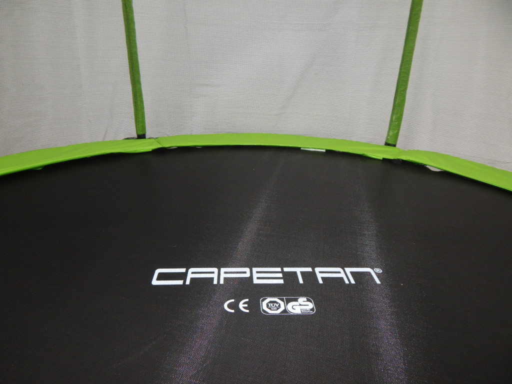 Capetan® Omega 305 cm Durchm. limettengrünes Trampolin mit Sicherheitsnetz - mit das Rahmengestell befestigenden T-Elementen zusätzlich verstärktem extra hohem Sicherheitsnetz - premium Gartentrampolin mit dicker Federabdeckung, mit einem Sprungtuch Details