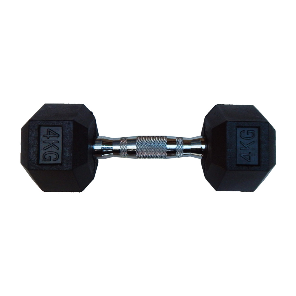 Capetan® Professional Line 4 kg HEX Einhand-kurzhantel für Fitnessraum mit gummierten Köpfen und verchromtem Griff – gummierte Hexagonhantel